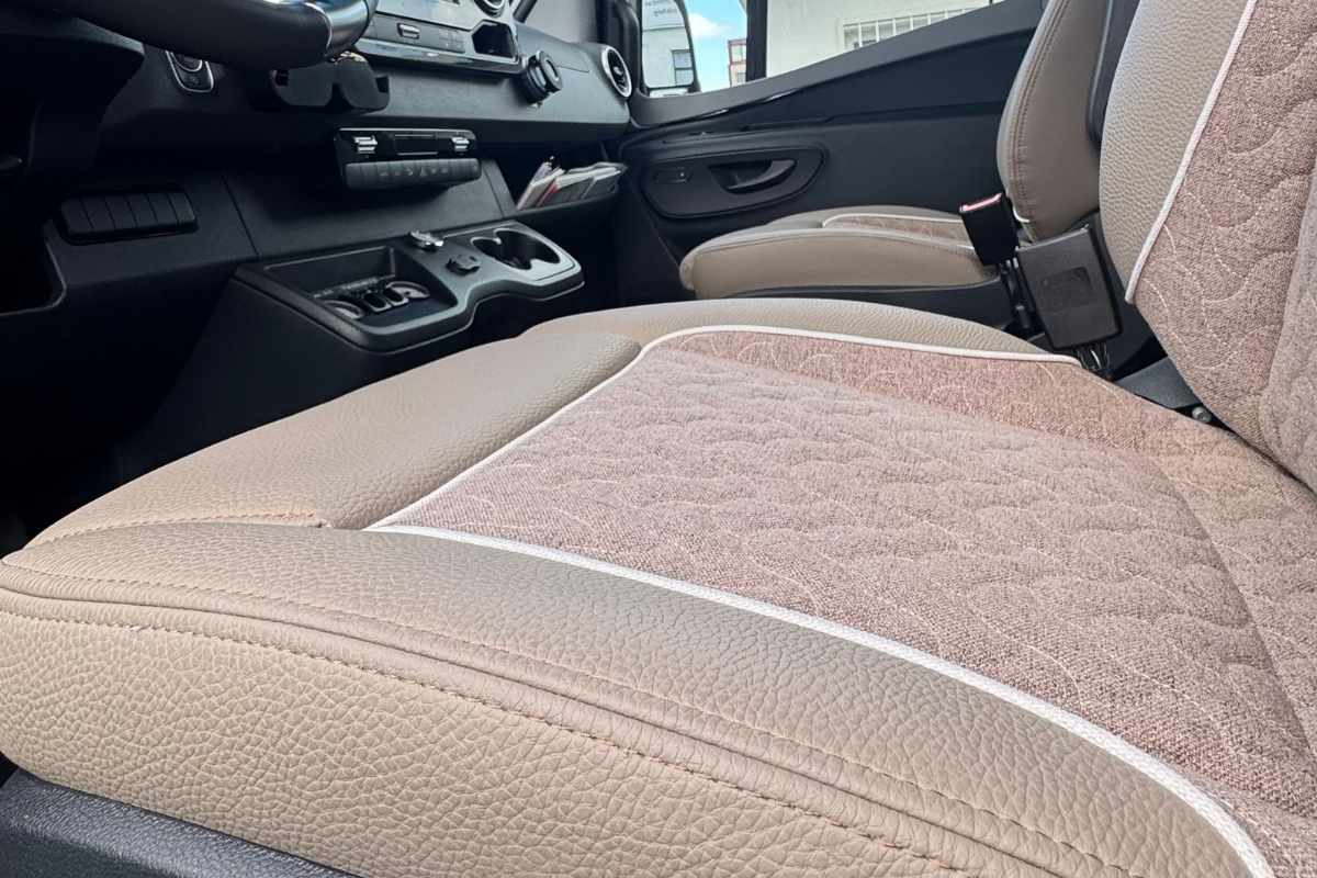 Die Kunden kamen mit einem klaren Wunsch: mehr Halt, mehr Komfort – besonders auf langen Reisen. Die originale Polsterung des Mercedes-Benz Wohnmobils war ihnen schlicht zu weich und die Sitzflächen seitlich zu schmal.