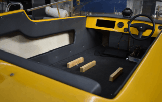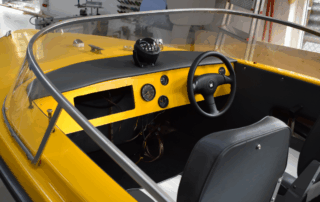 Bei diesem Rhein-Flitzer wurden von uns zudem die Seitenverkleidungen sowie das Armaturenbrett inklusive Kompass passgenau eingepasst und mit Leder bezogen. Das Design orientierte sich dabei konsequent an den vorhandenen Vordersitzen, sodass ein stimmiges und durchgängiges Erscheinungsbild entstand.